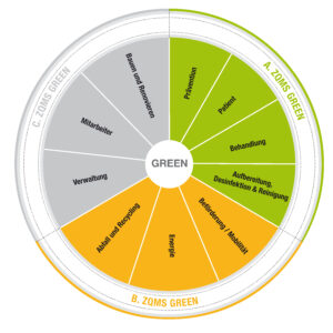 ZQMS GREEN als Nachhaltigkeitskompass für alle ZQMS-Anwenderinnen und Anwender, die sich für die Möglichkeiten einer nachhaltigen Praxisführung interessieren. Sie finden darin zahlreiche Informationen, wie Sie Ihren Beitrag zum Klimaschutz leisten können, und erhalten einen umfassenden Überblick zum Energiesparpotenzial Ihrer Praxis.